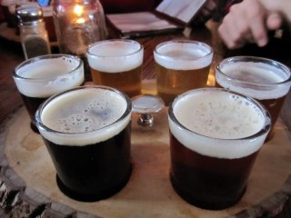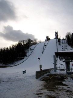 Lake Placid (former site of the Olympic games in 1980 and 1932) was not too far from our cabin. We bought an Olympic Passport to check out some places at the Olympic Village the next day. But first, we felt the need to frolic on yet another frozen body of water. Mirror Lake was frozen solid, so we went running, sliding, and simply enjoyed being on a frozen lake. There were even people on dogsleds!After all the frolicking, it is no surprise that we we were very cold and hungry. Perfect time to check out the local brewery, Lake Placid Pub & Brewery! Since we couldn’t decide on which beer to choose, we tried the sampler with 6 of their brews before deciding on one to order in a pitcher. We even got some ‘smores to top off the meal.
