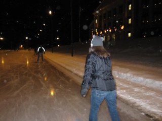Then, it was time to headed out for more winter fun: ice skating on the speed skating track! There were no railings for me to rely on, so this time, I actually had to buck up and learn to ice skate.