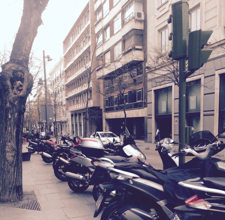 To pedestrians, the sidewalk is a safe little bubble, especially when exploring the charming little streets of Madrid. Maybe you pass an occasion skateboarder or roller skater. But there is something else lurking near by that may catch you by surprise.
